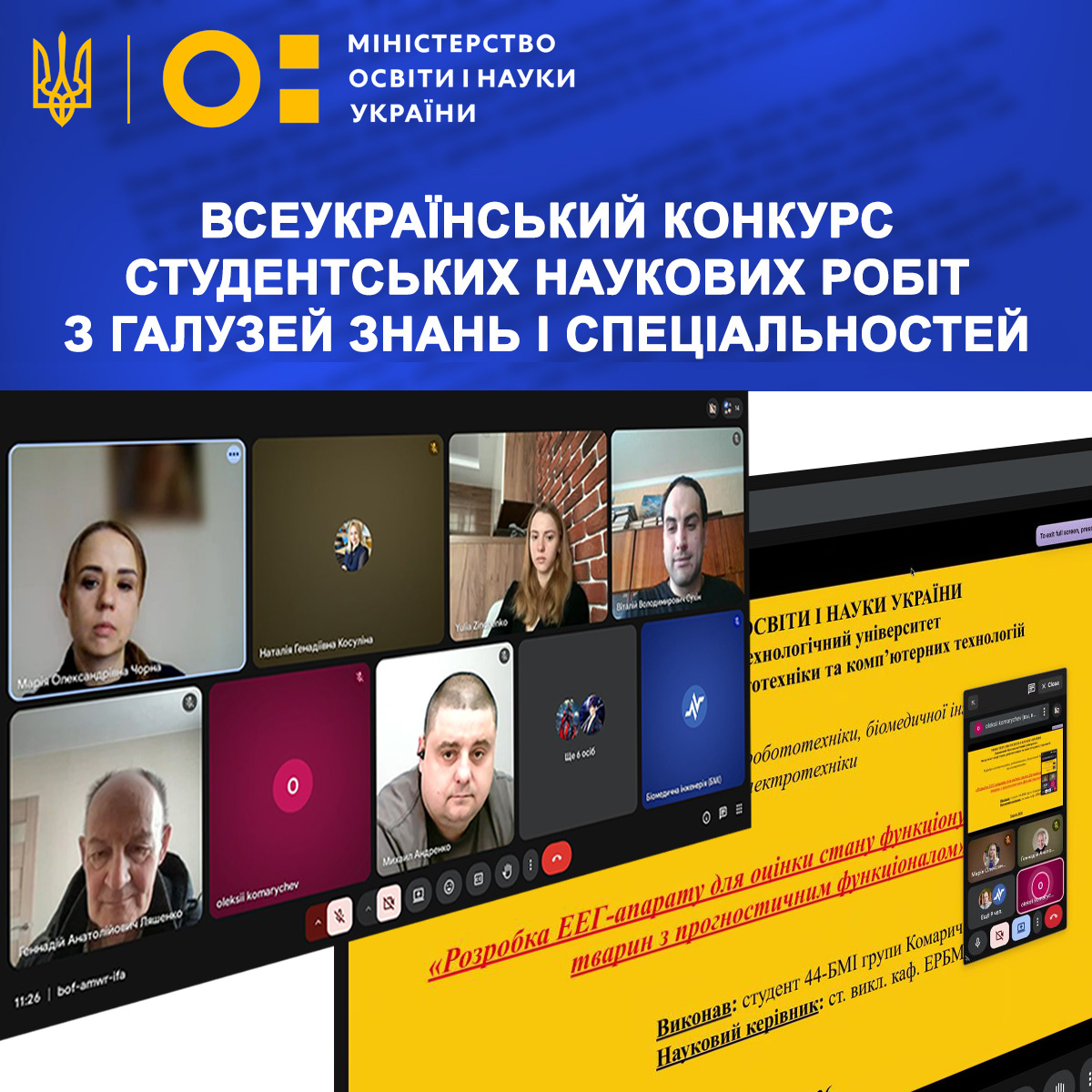 Здобувачі спеціальностей «Біомедична інженерія» та «Електротехніка та електромеханіка» факультету енергетики, робототехніки та комп’ютерних технологій представили свої наукові дослідження на Всеукраїнському конкурсі студентських наукових робіт.