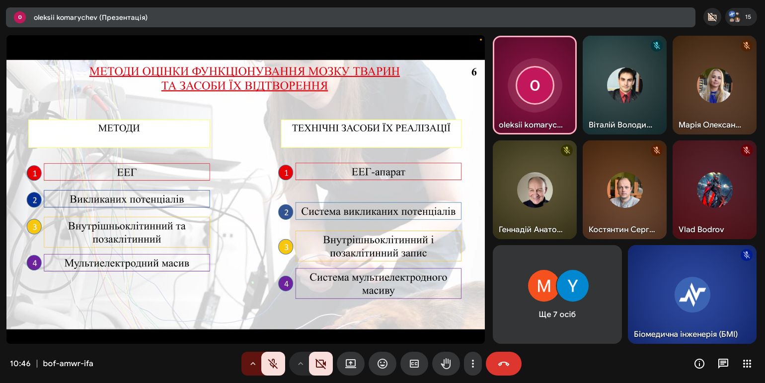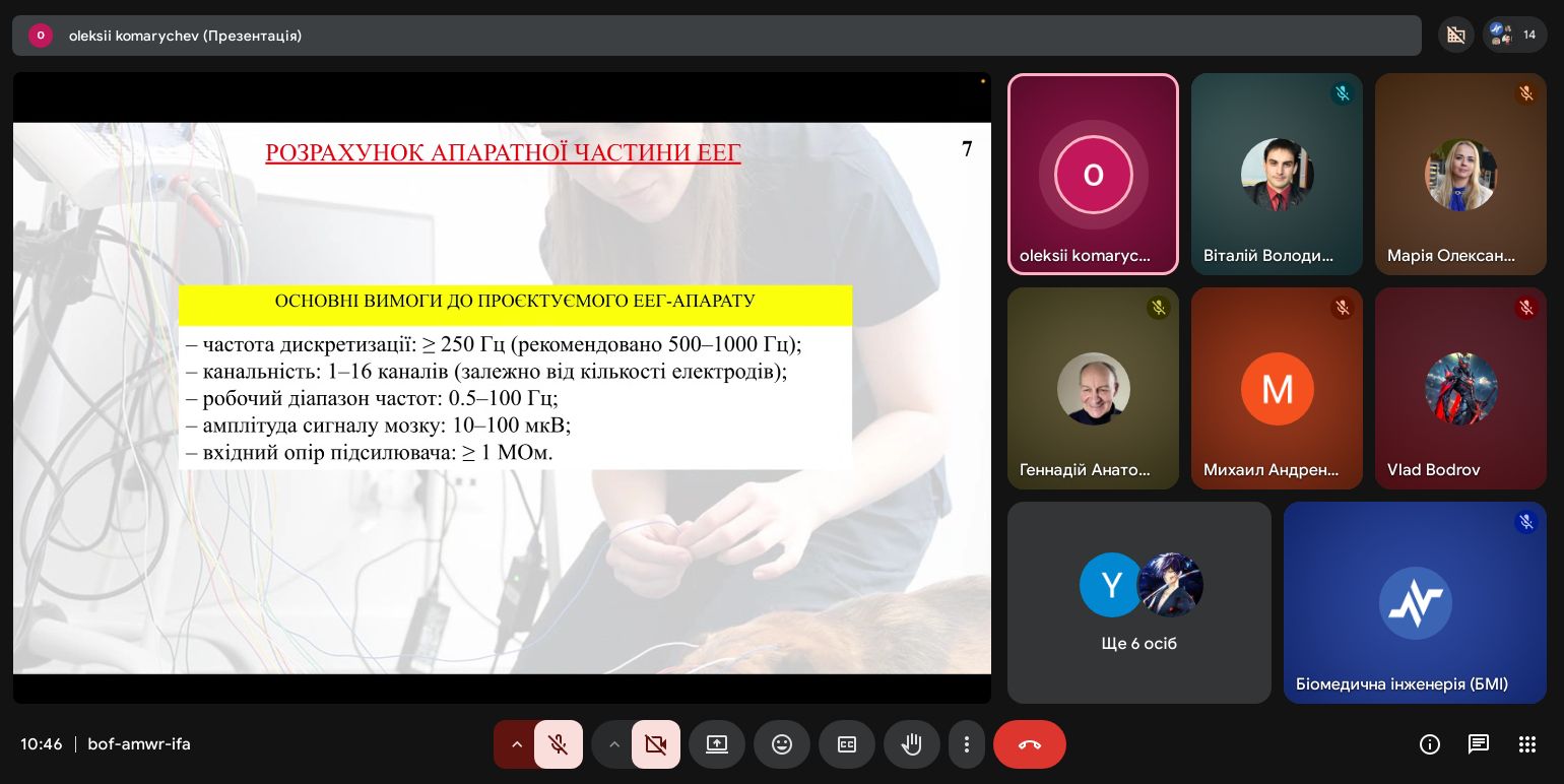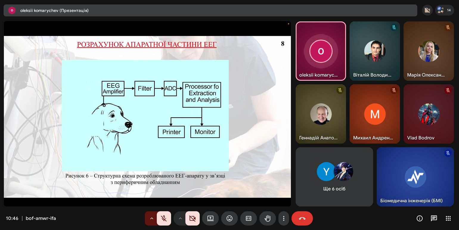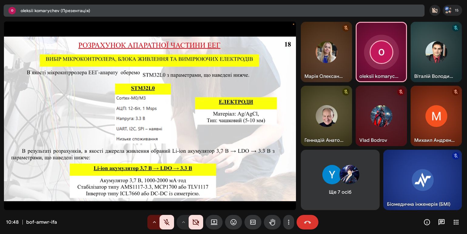 | Диплом І ступеня Розробка ЕЕГ-апарату для оцінки стану функціонування мозку тварин з прогностичним функціоналом | Олексій Комаричев 163-22б-04 | Віталій Сухін старший викладач |