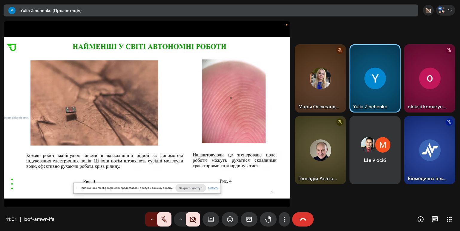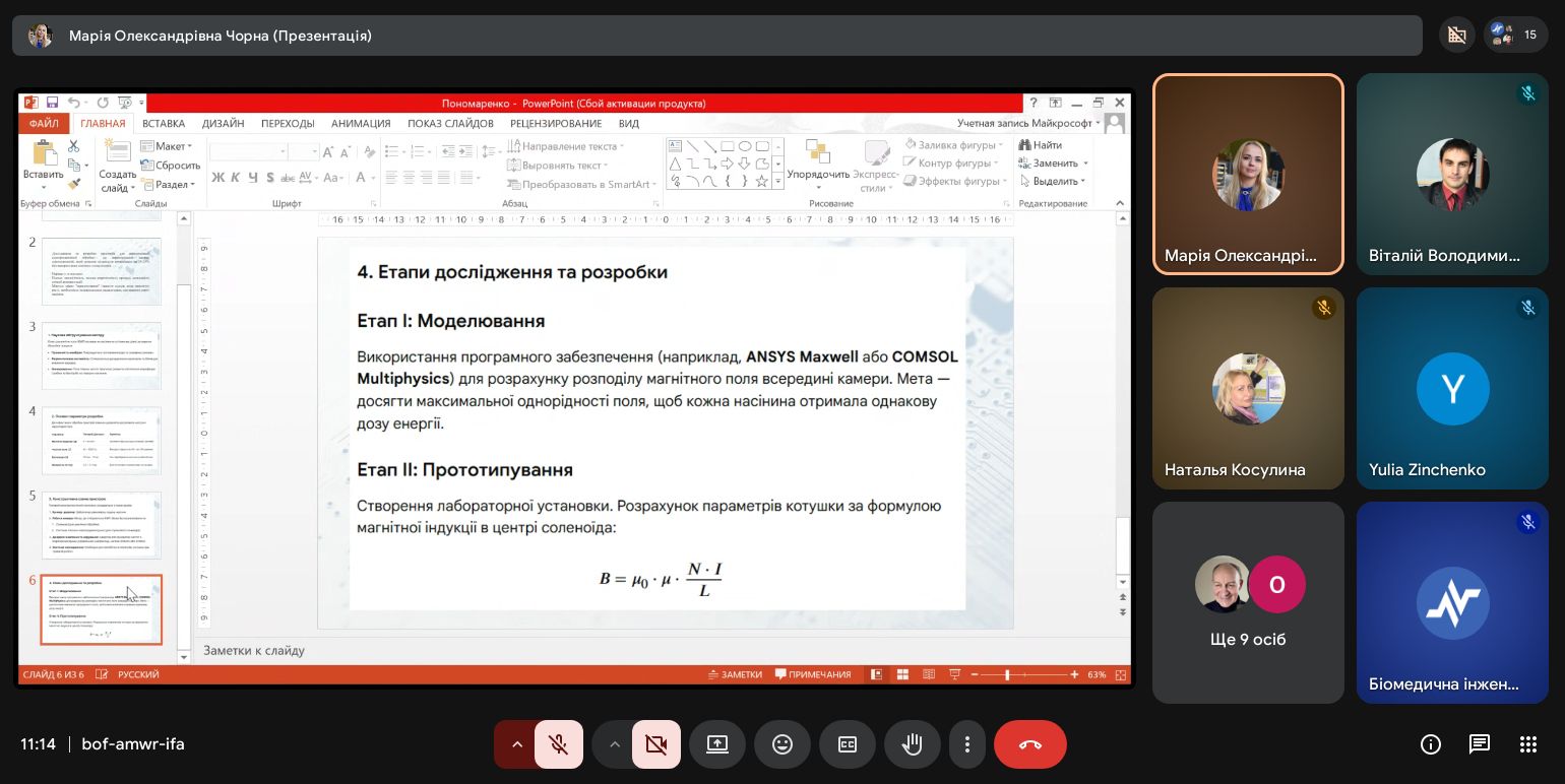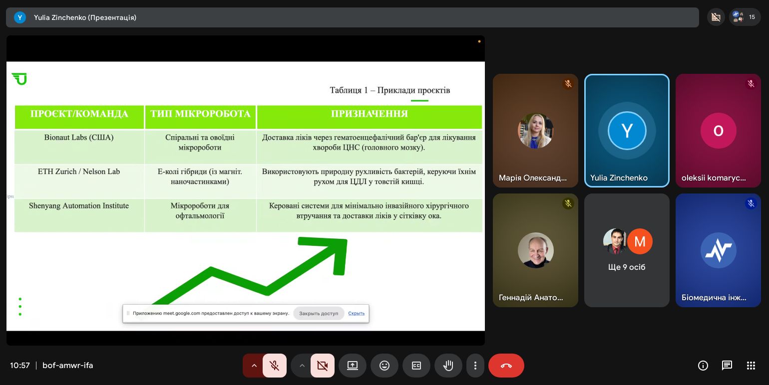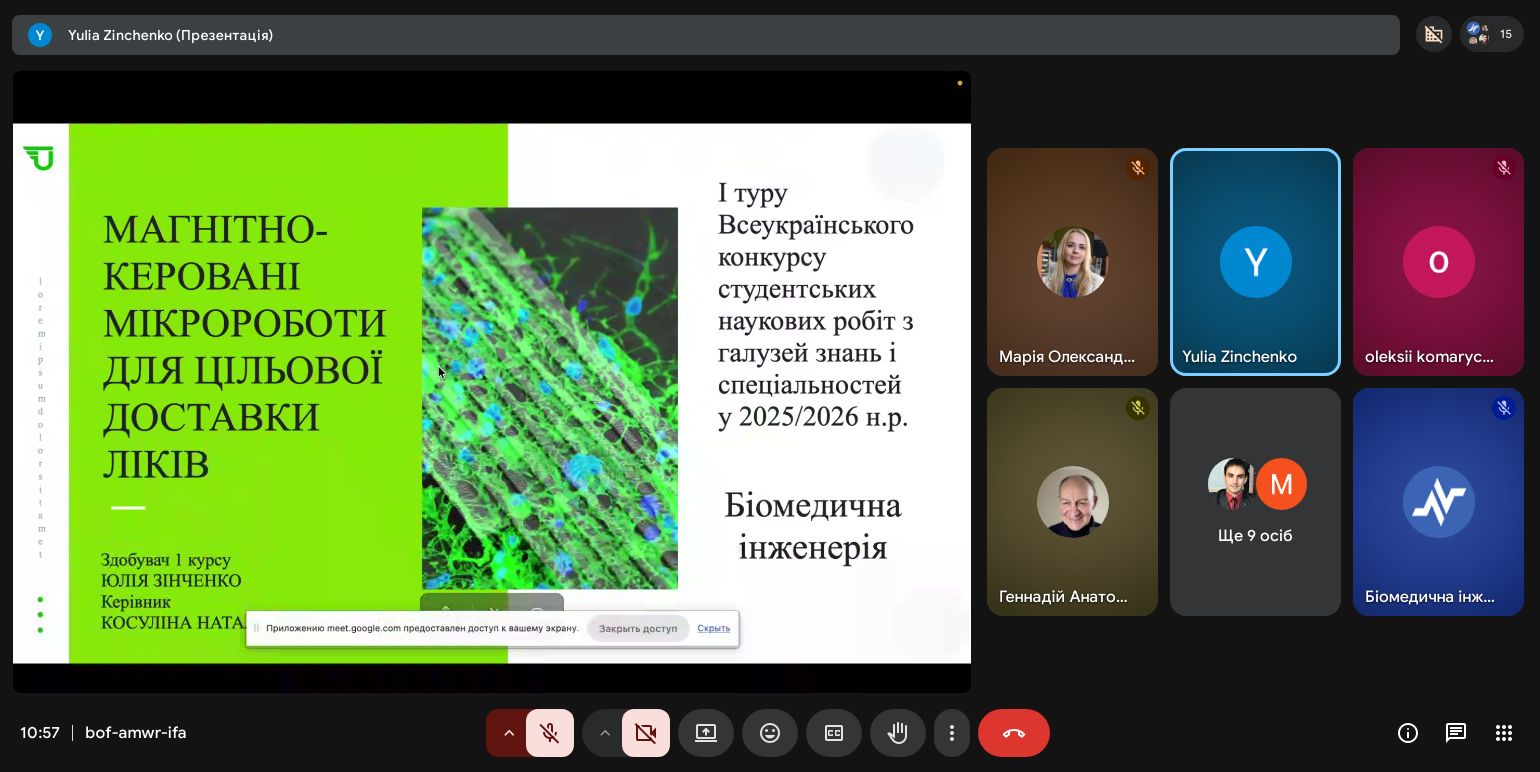 | Диплом ІІІ ступеня Магнітно-керовані мікророботи для цільової доставки ліків | Юлія Зінченко G22-25б-03 | Наталія Косуліна д.т.н., проф. |