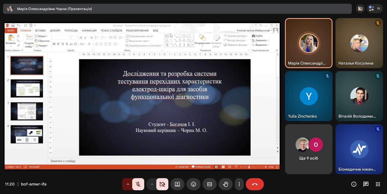 | Диплом ІІ ступеня Дослідження та розробка системи тестування перехідних характеристик електрод-шкіра для засобів функціональної діагностики | Ігор Богачов 163-22б-04 | Марія Чорна к.т.н., доц. |